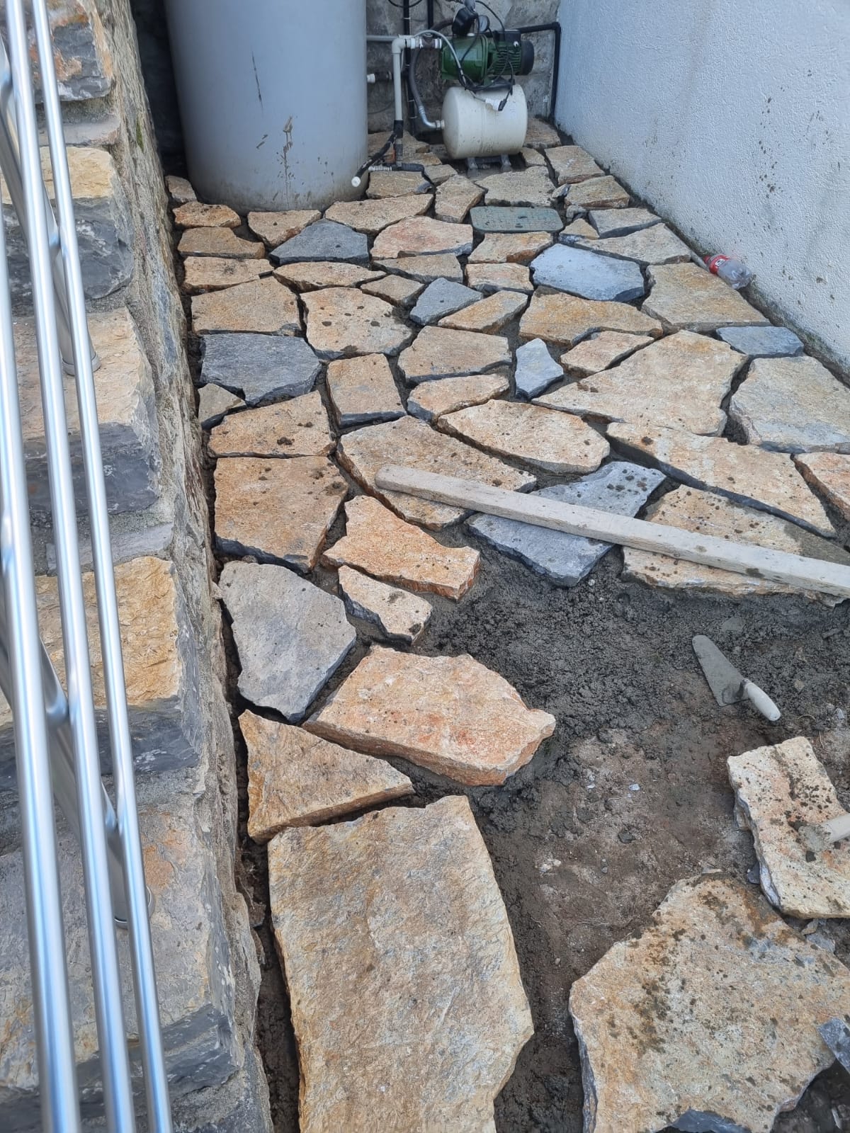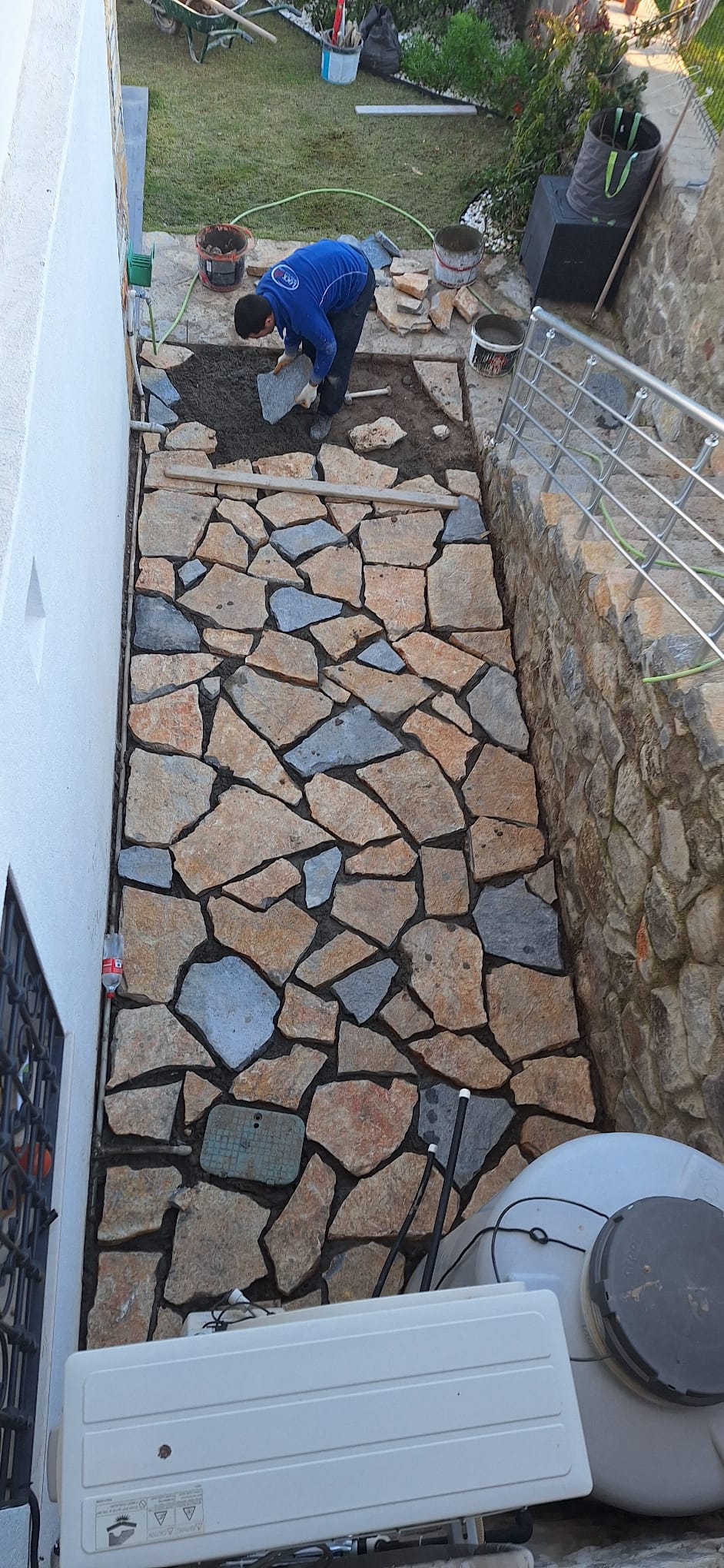 Bodrum Gümbet – Platin Rezidans Kızılağaç Kayrak Taşı Toprak Üzerine Döşeme